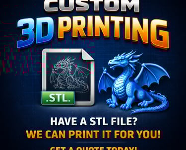 We provide high-quality custom 3D printing for individuals, creators, hobbyists, and businesses. Whether you already have a design file or need help bringing an idea to life, we can turn your digital models into real, physical objects.